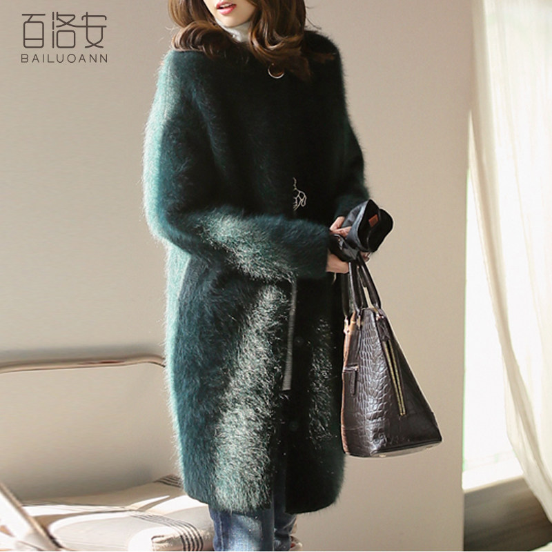 100 loane 100 lap sweaters women's coat jacket thick winter new pint large cardigan with long version of the round collar dark-knitted sweatshirt