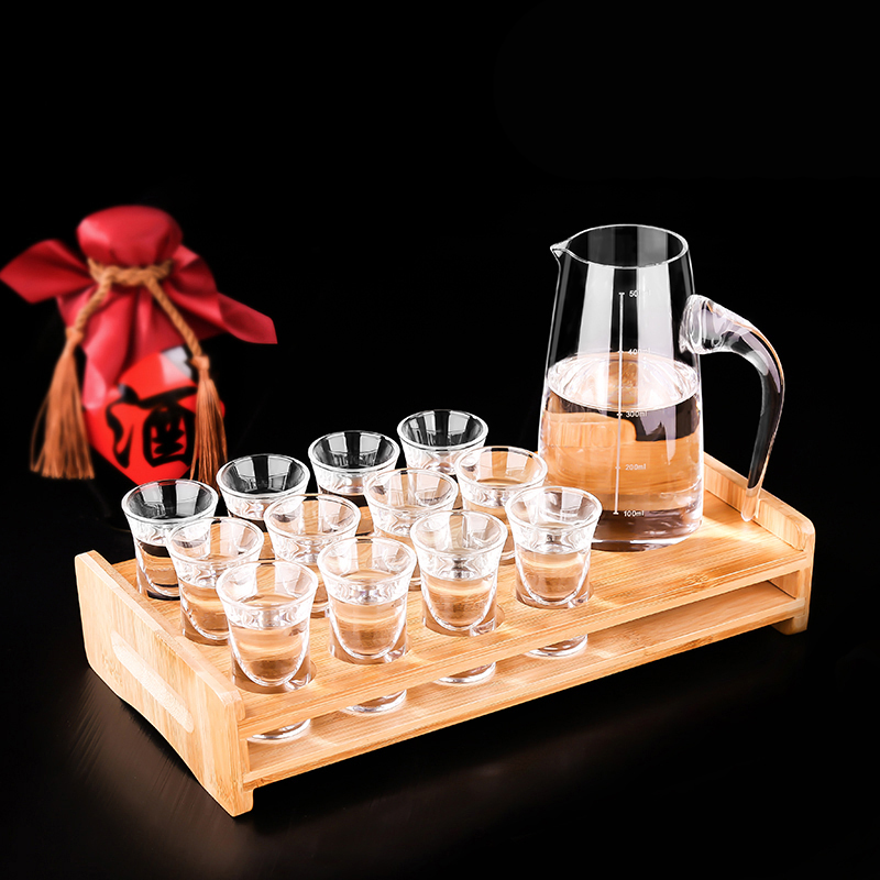 (12 thick-bottomed cups 30ml, 500ml jug, 13-hole bamboo rack) 05030 (12 thick-bottomed cups 15ml, 500ml jug, 13-hole transparent rack)J