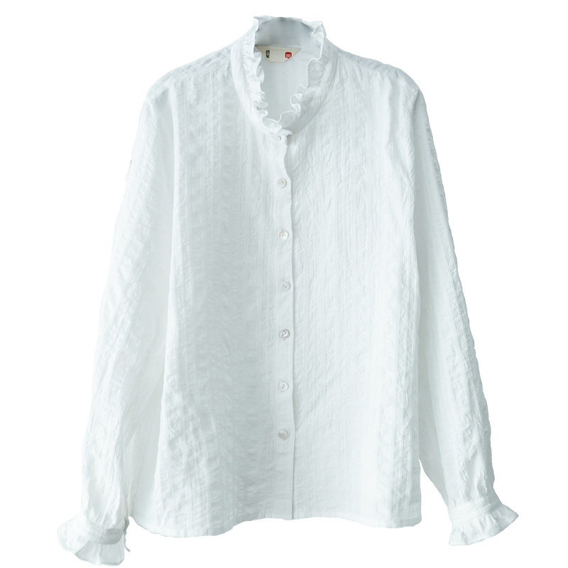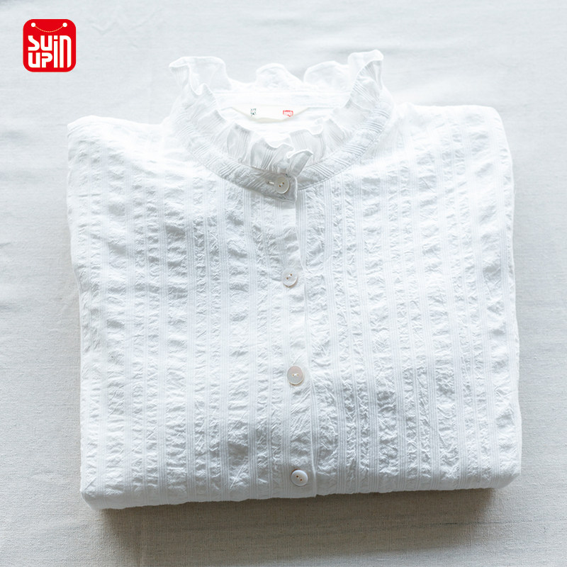 SUIN2021 spring and autumn new art retro wood ear collar shirt sweet Korean white long sleeve shirt women