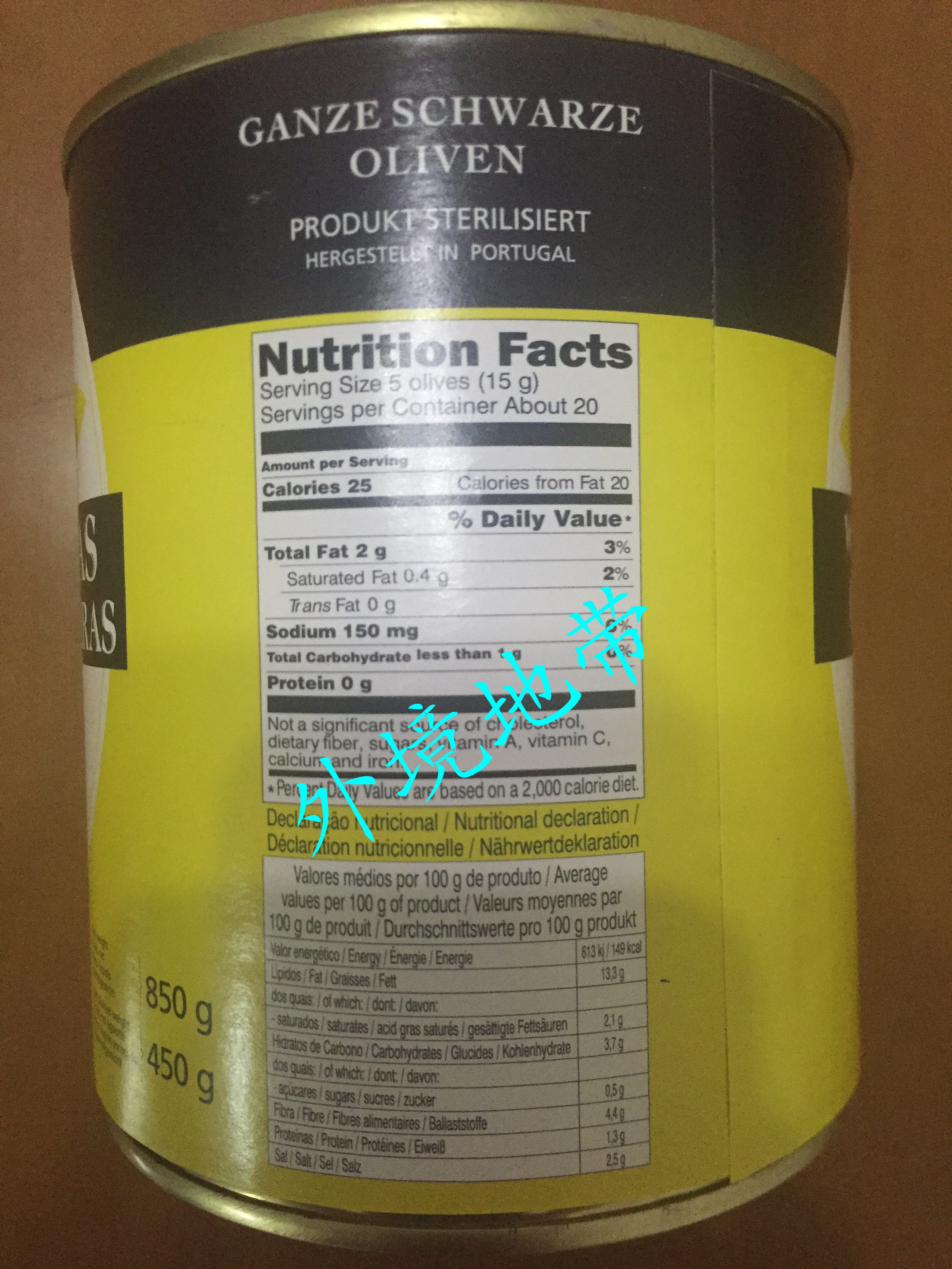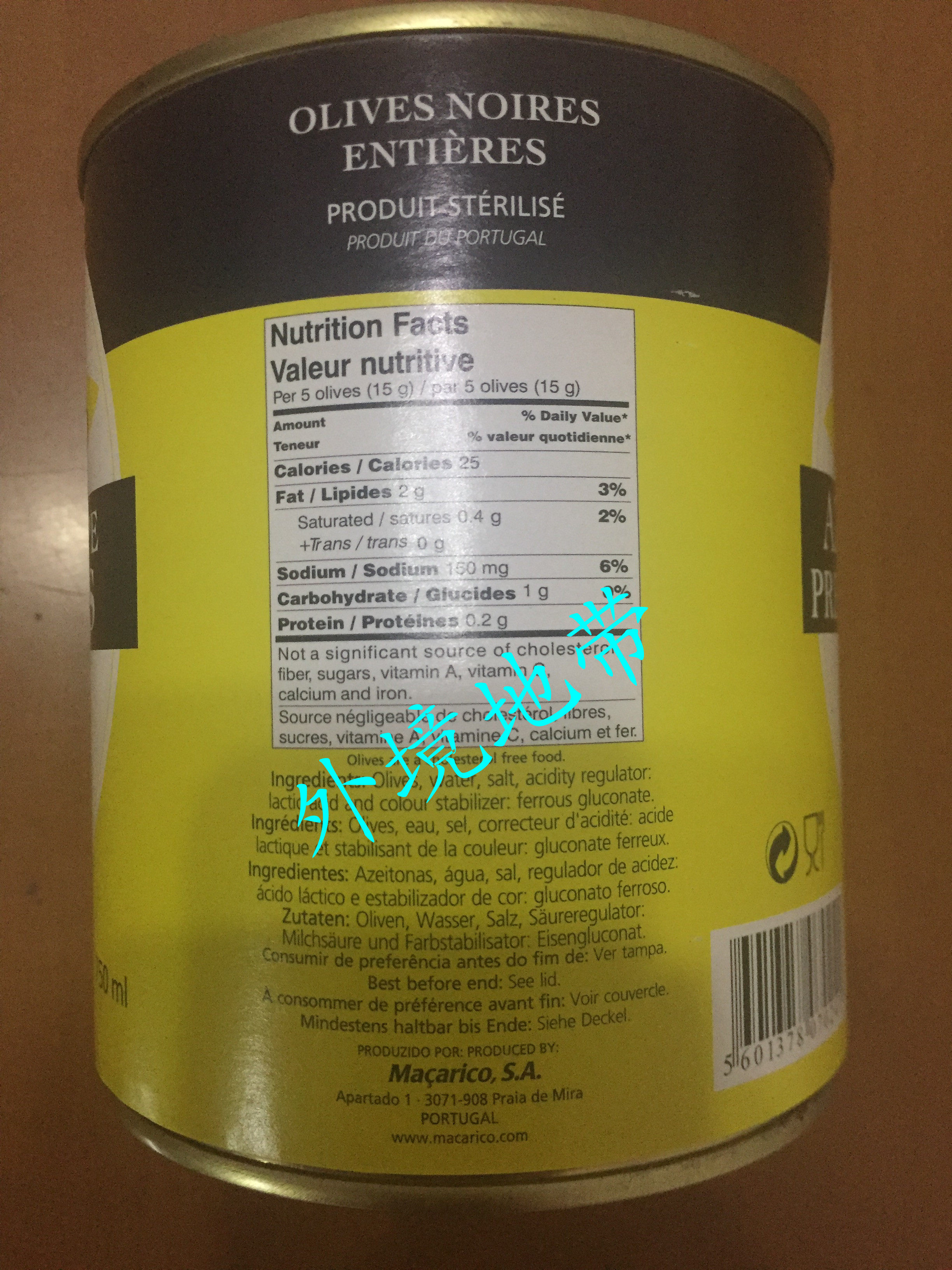 Macau Macarico Masaste original grain black water olives 450g water bubble olives Portugal imports
