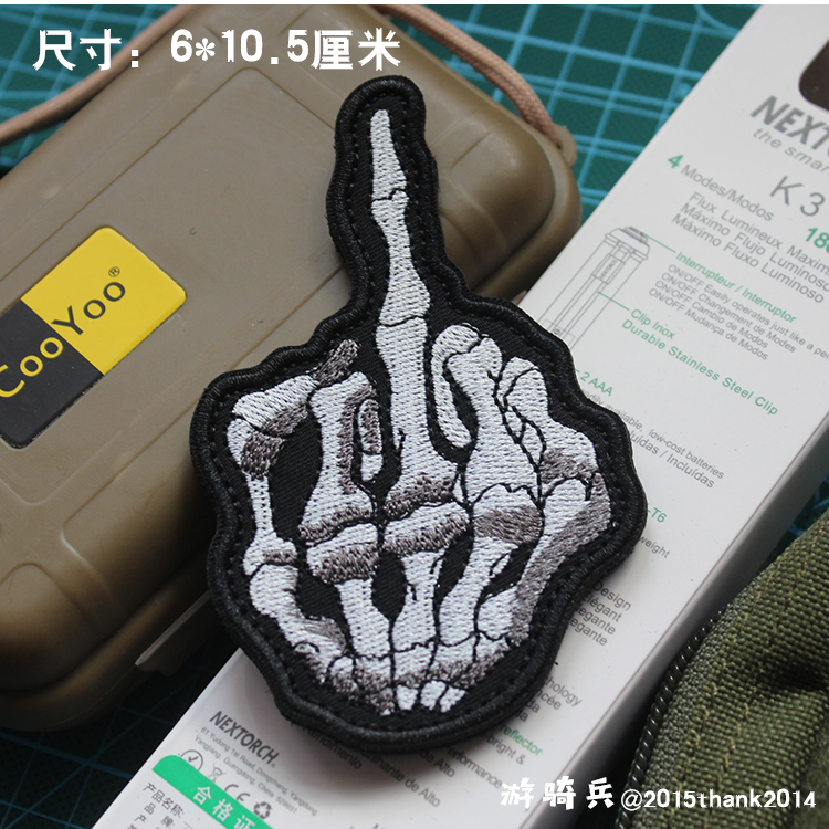 Bone Middle Finger Embroidery Magic Sticker Octopus Octopus Octopus Skull Finger Magic Patch Repair Program DIY Morale Badge Accessories With Hair Side