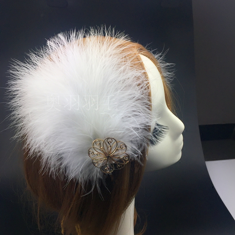 Feather Head Adorned Bridal Headwear White Feather Head Floral Hair Accessories Hairpin Feather Breast Flower Wedding photo Stage Performance
