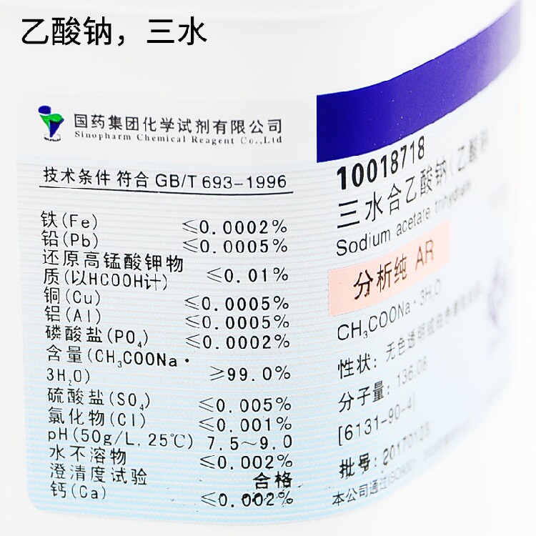 Sinopharm Sodium acetate Trihydrate Sodium acetate 6131-90-4 Shanghai test analysis pure ARge 99 0P0gSCRC