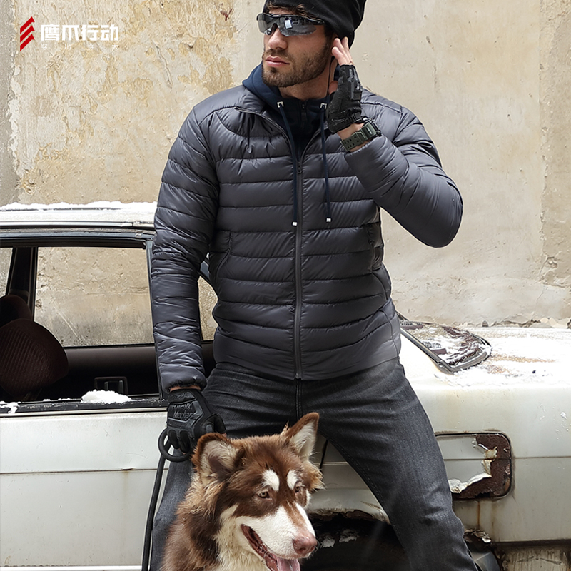 Eagle claw action ribs down jacket men's light short warm stand-up collar slim jacket outdoor waterproof down jacket