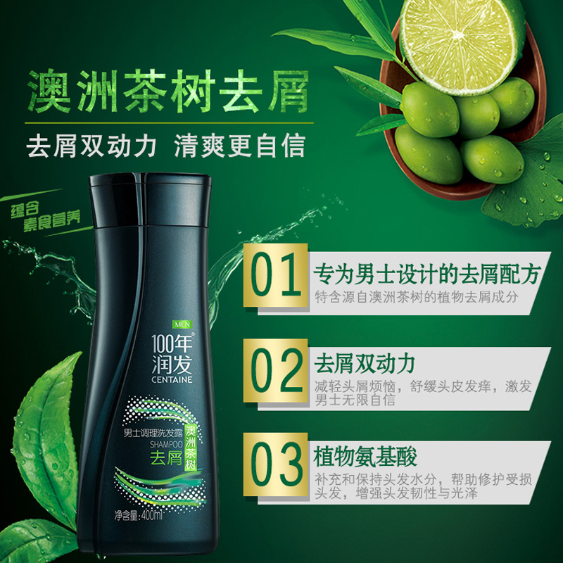 100 years of Runfa Australia Tea Tree 400ml Shampoo Water for Men's Special Anti-dandruff, Anti-itching, Soothing, Refreshing and Moisturizing