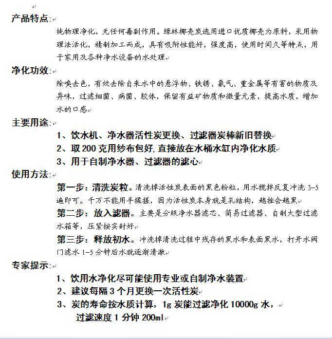 Water purification activated carbon drinking water tap well water fish tank aquarium deodorant water purification filter water purifier coconut shell particle carbon