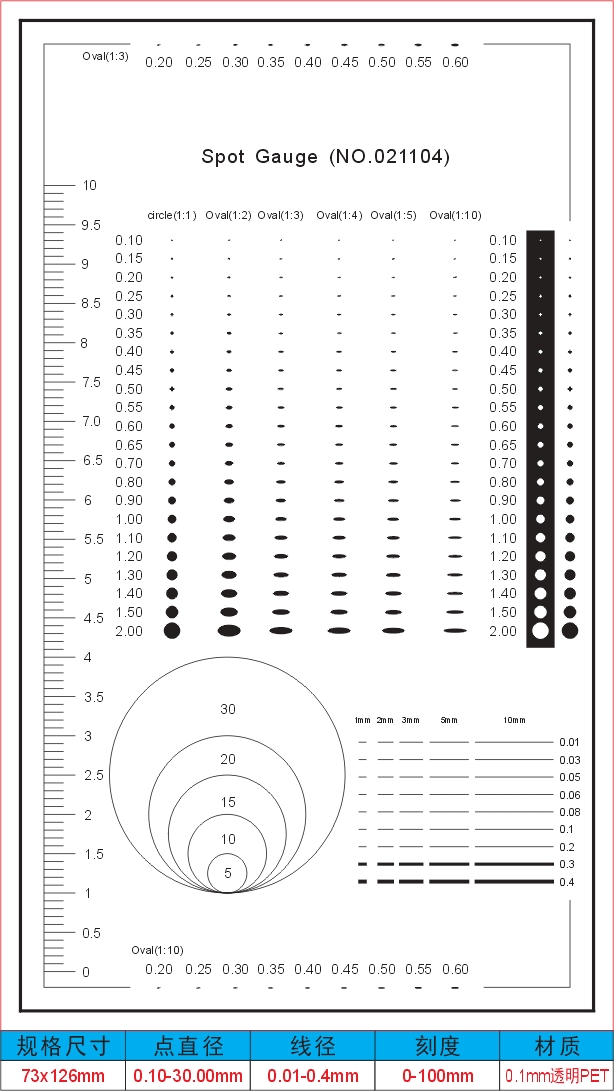 Point line gauge caliper comparison card area gauge scratch circle oval diameter line width line thickness Spot Gauge