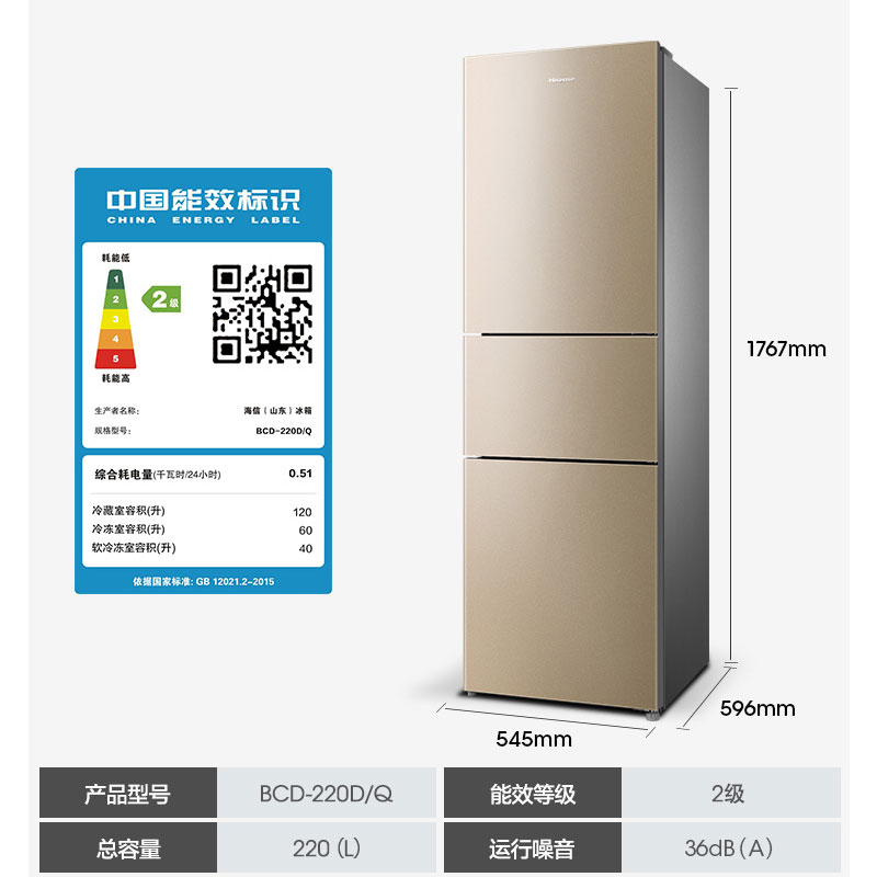 Hisense BCD-220D Q refrigerator three-door refrigeration energy-saving small special household rental