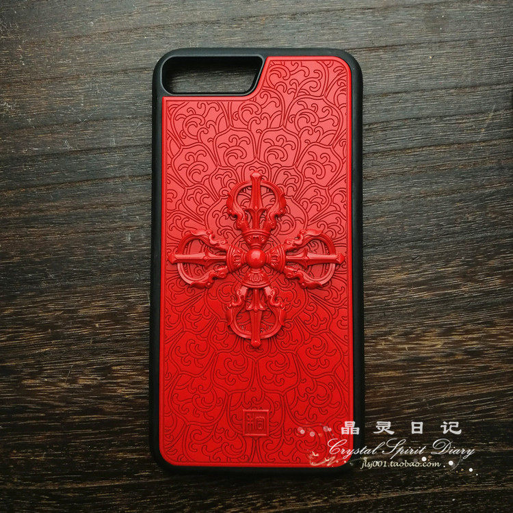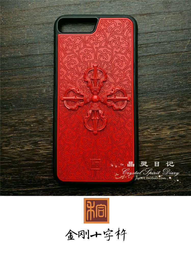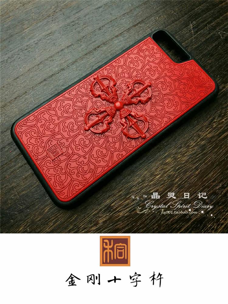 Large lacquer lacquered engraving with red cross diamond pestle mobile phone protective shell iPhone6 6s 6sPlus 7 8Plus X