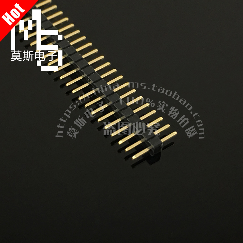 Gold plated environmentally friendly 1 0MM pitch row pin 1*40P single row straight pin 180 degrees straight and small black clamp foot distance 1 0