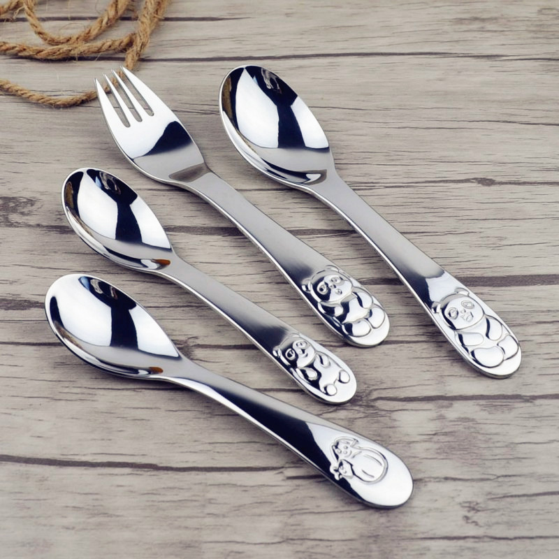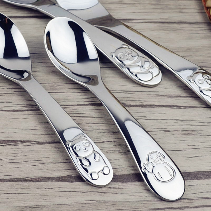 18-10 stainless steel tableware children's spoon baby spoon learning to eat training spoon baby food supplement spoon cartoon feeding spoon