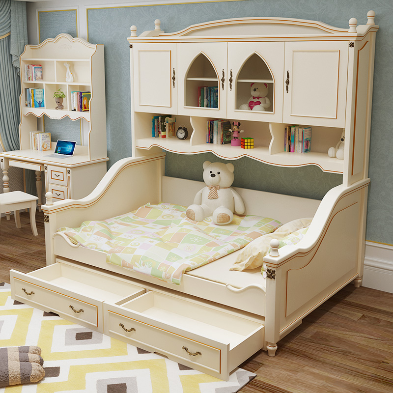 Solid wood children's bed wardrobe bed integrated boys girls American children's suite furniture multi-functional storage combination bed