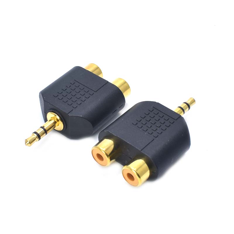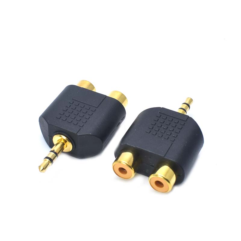 Gold plated 3 5mm male 10% 2-turn double lotus head mother seat changeover head 2RCA female audio adapter
