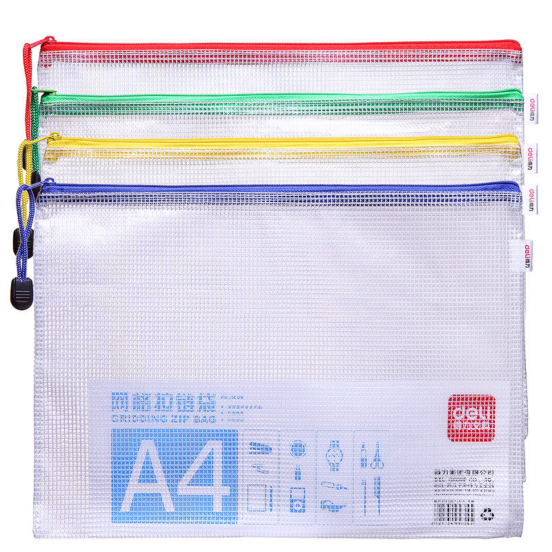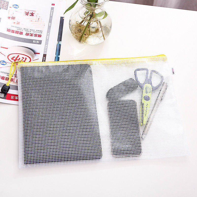 Technical mesh zipper waterproof file bag A4 medical record bag transparent material bag students use subject work test bag