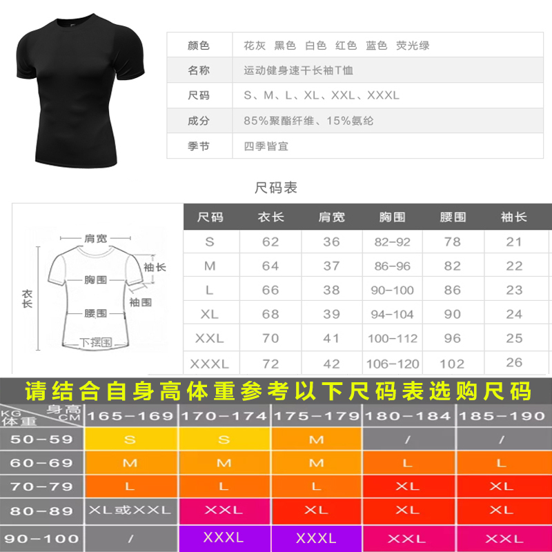 Fitness clothes tights men's sports training clothes High elastic compression sweat-absorbing quick-drying short sleeve running T-shirt summer