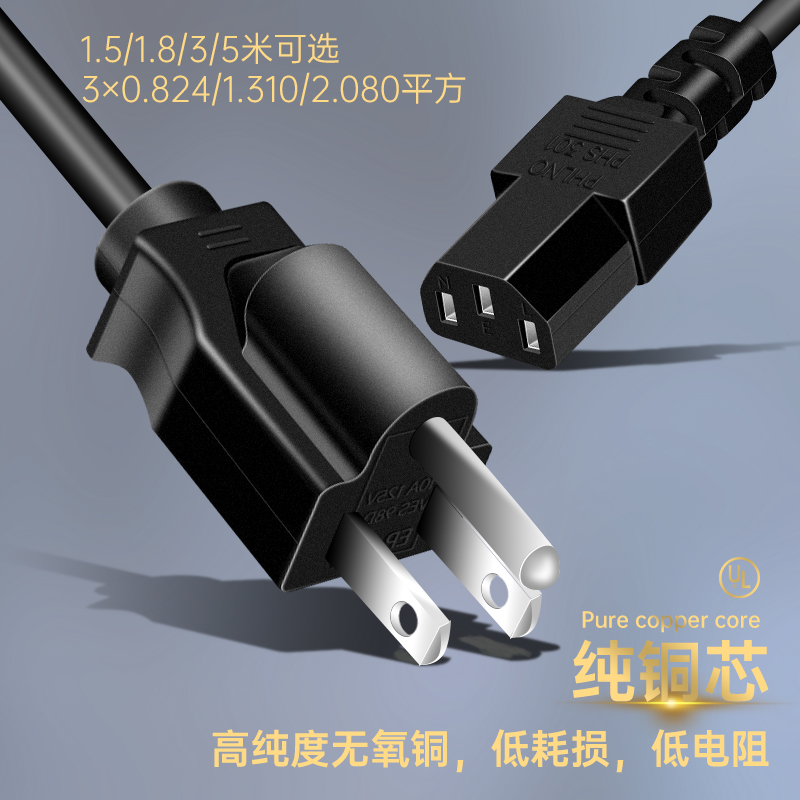 UL Certified U.S. Standard American Pure Copper Power Cord Desktop Computer Host Power Cord Rice Cooker with Plug