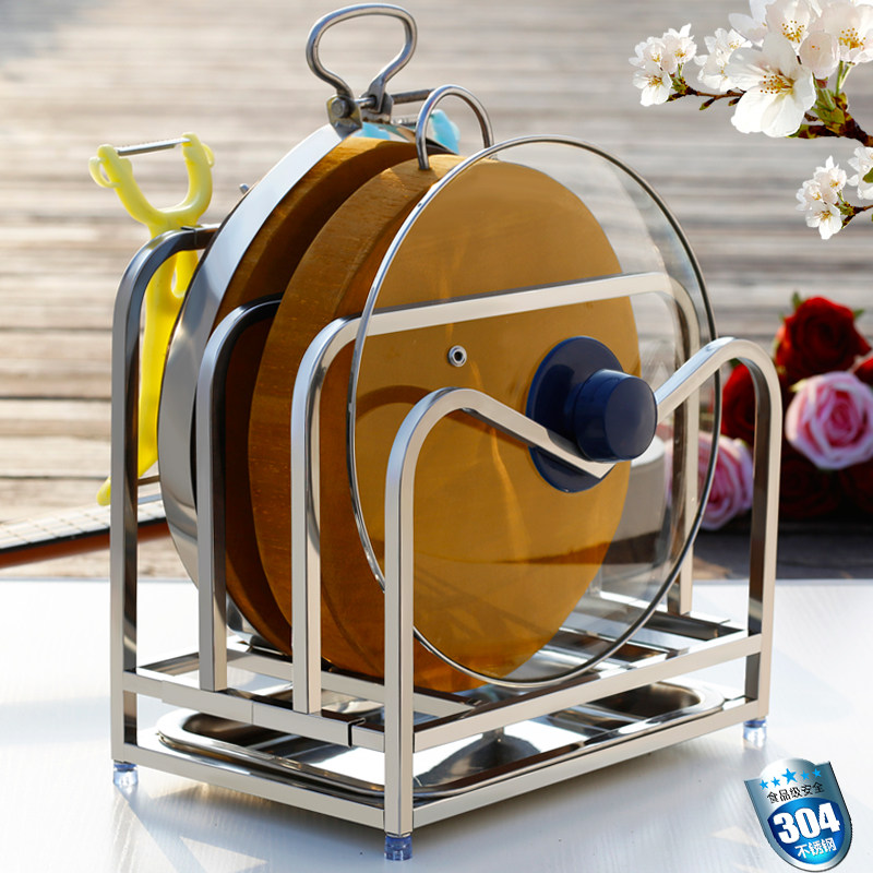 304 stainless steel cutting board rack Kitchen shelf Pot cover rack Chopping board storage layer rack Drain floor cutting board rack