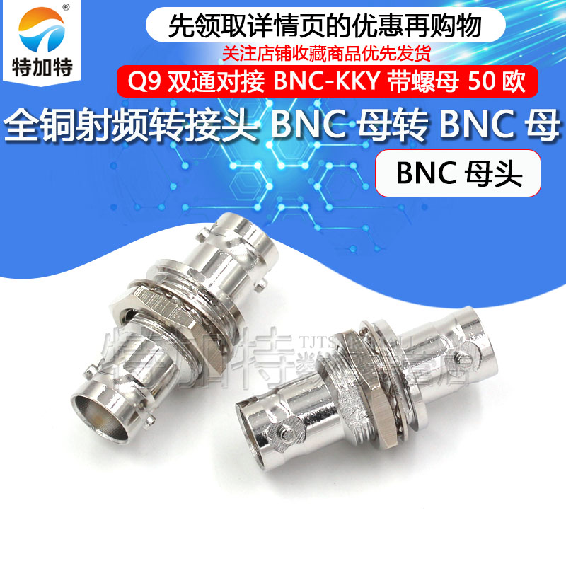 All-copper RF adapter BNC female to female) Q9 double-pass butt through nut BNC-KKY fixing panel