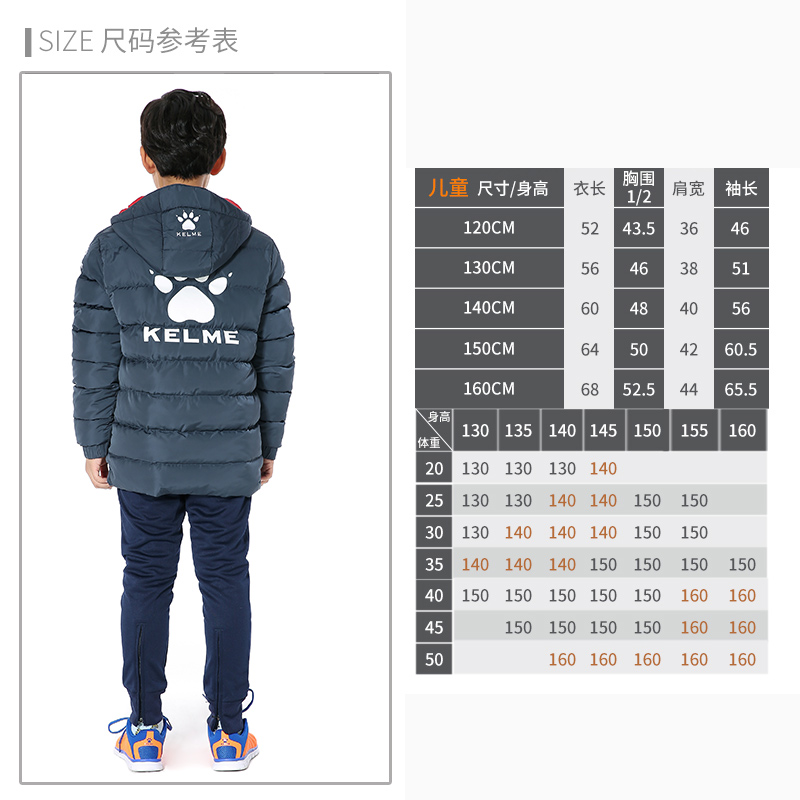 KELME Karmei Children Sports Cotton Clothing Jacket Football Cotton Padded Jacket Warm Training Cotton Clothes K15P014-2
