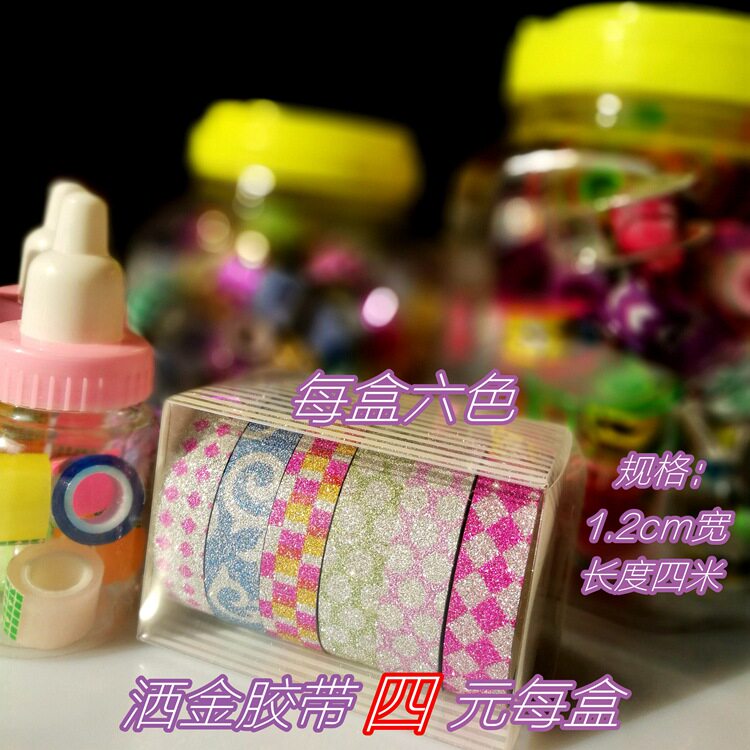 Bottle of 6-color tape A bottle of price Candy paper flower tape with seat 5 colors each sprinkled gold decorative lace double-sided tape 1 box of 6 rolls