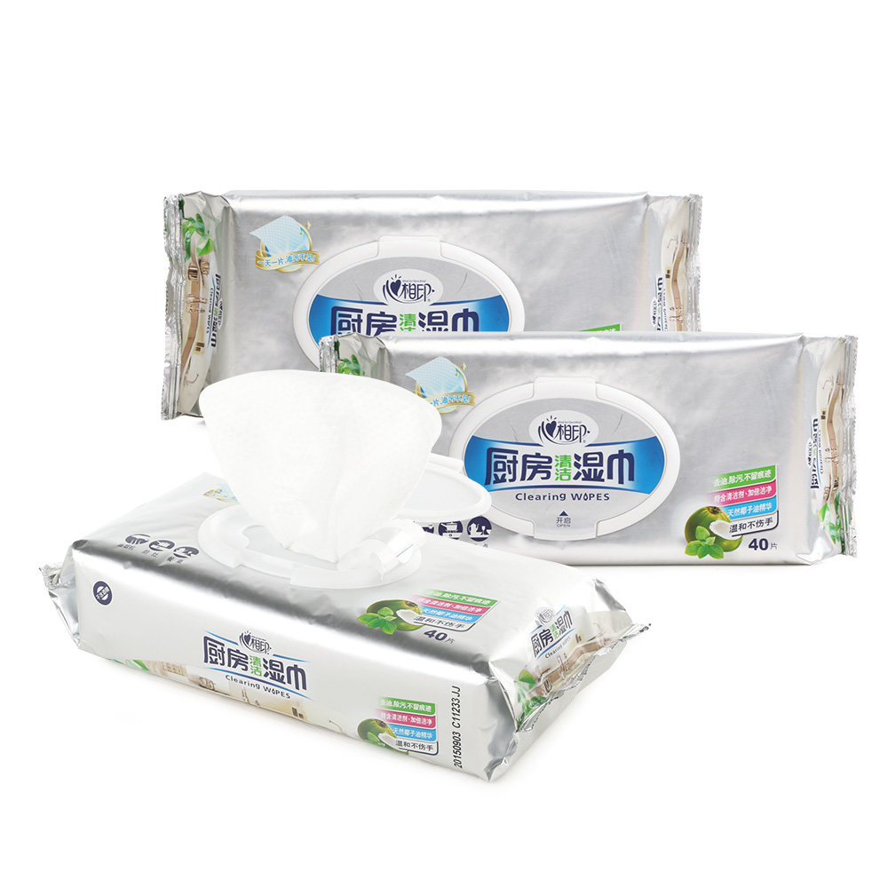 Heart phase Inprint Kitchen Wet Paper Towels Clean to oil Home Clothing Special Disposable range hood Oil stain 3 packs