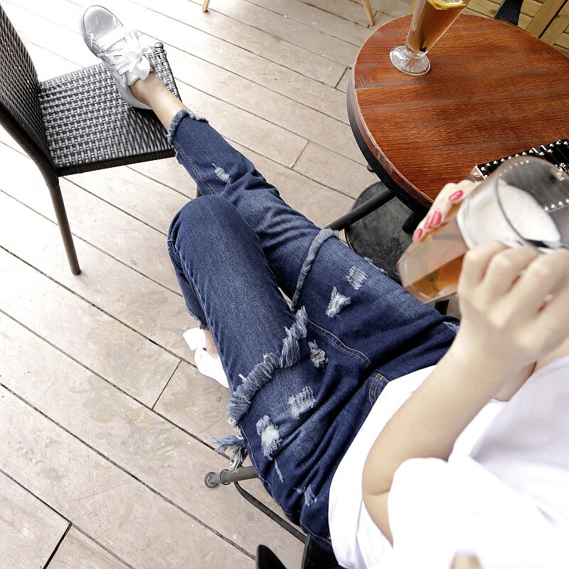 European station European new spring and autumn women's new 2022 yako jeans dress fashion hole jeans tide