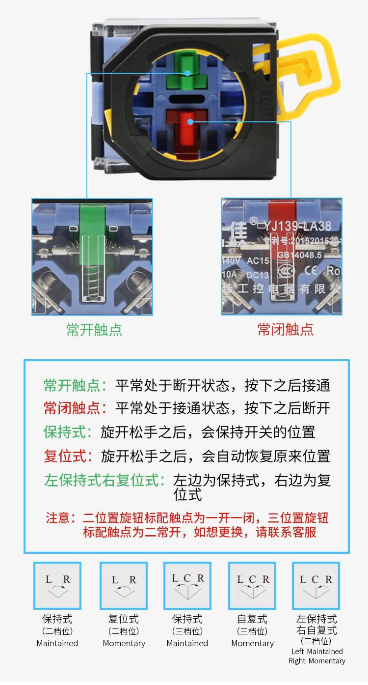 One-in-two-gear knob switch self-locking type LA38-11XD 21 with lamp knob 24V 220V 220V 22mm