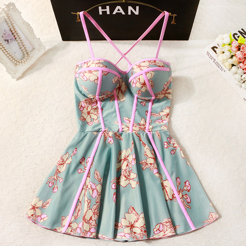 New sexy one-piece dress style flat corner swimsuit woman High sense pure desire for wind and slim spa conservative swimwear