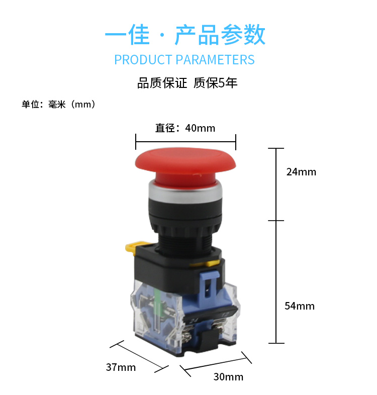 A canon power supply mushroom head button switch 22mm self-reset round green red LA38-11M