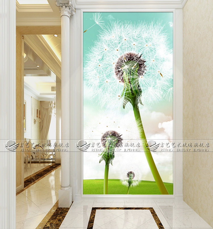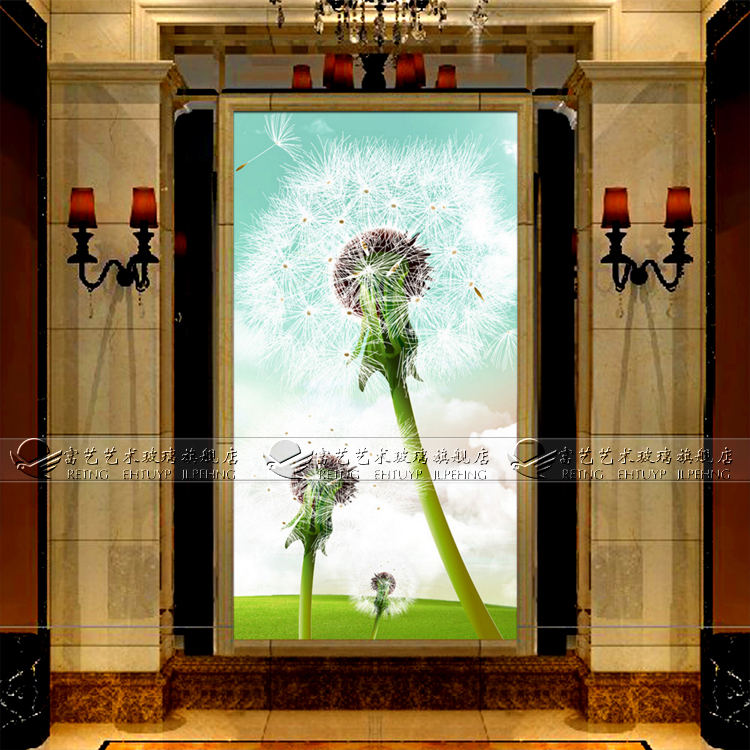 Boutique Art Glass Deep Engraving Crafts Gangway Genguan Entrance Suspended Ceiling Screen Partition Organic Steelmaking Dandelion