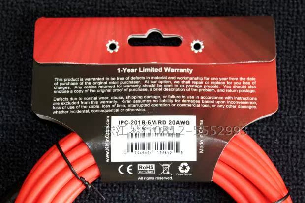 Kirlin Colin Connection Line IPC-201B-6M 20AWG Musical Instrument Bass Guitar Noise Reduction Line 6 m
