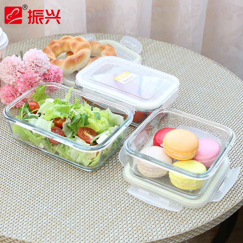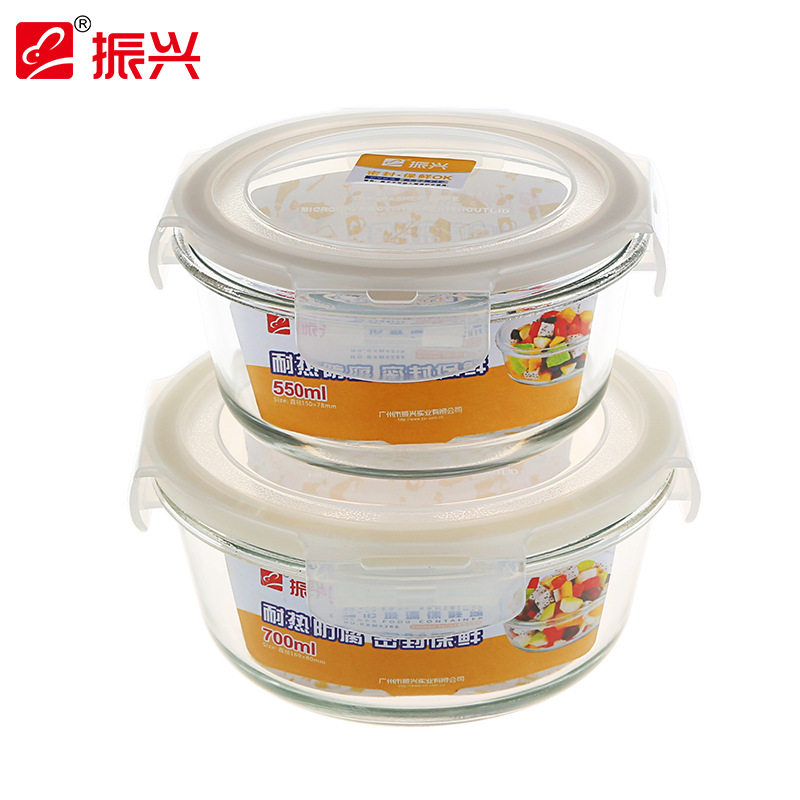 Revitalized Heatproof Glass Square Preservation Box Round Glass Lunch Box Microwave Oven Lunch Box Sealed Box Freshness