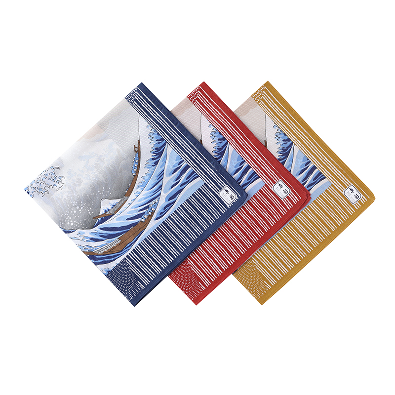 Japanese made Mountain Benjen men's handkeratopter Phanda pure cotton ultra-thin floating painted Kanagawa Surf