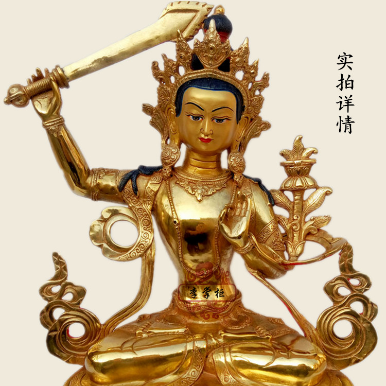 Shopkeeper Li Buddha statue Tibetan Tantric Nepalese pure copper full gilt sword Manjushri Buddha statue 45cm ornament