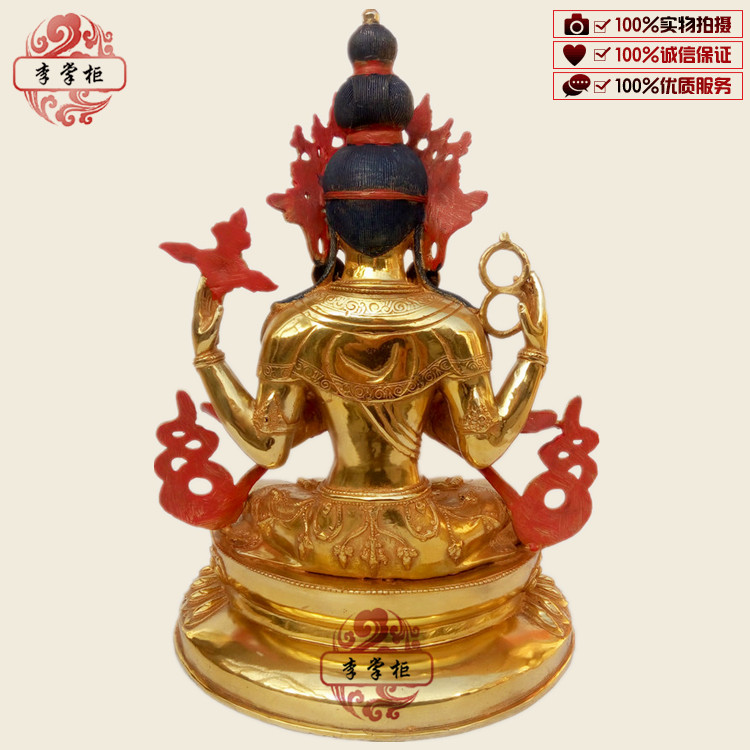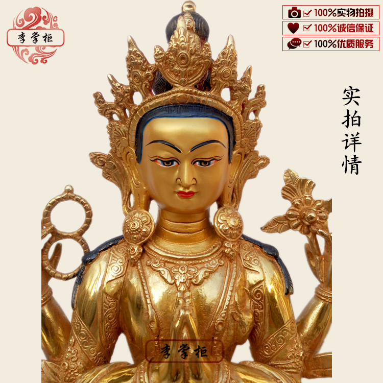 Li dispensers Buddhist statues Tibetan Buddhism Nepal pure copper full-time gold four walls Guanyin 45cm Mizong Bodhisattva