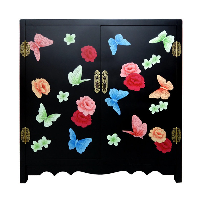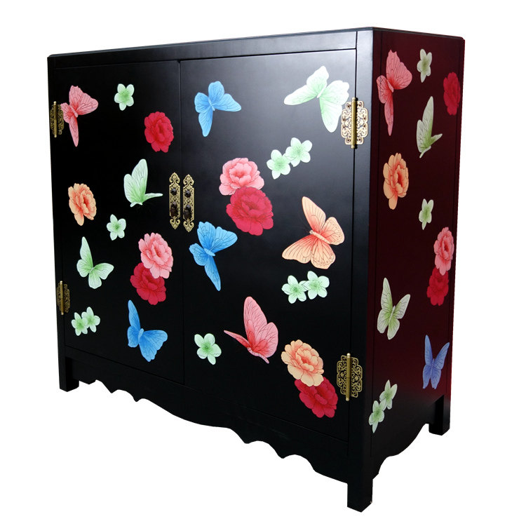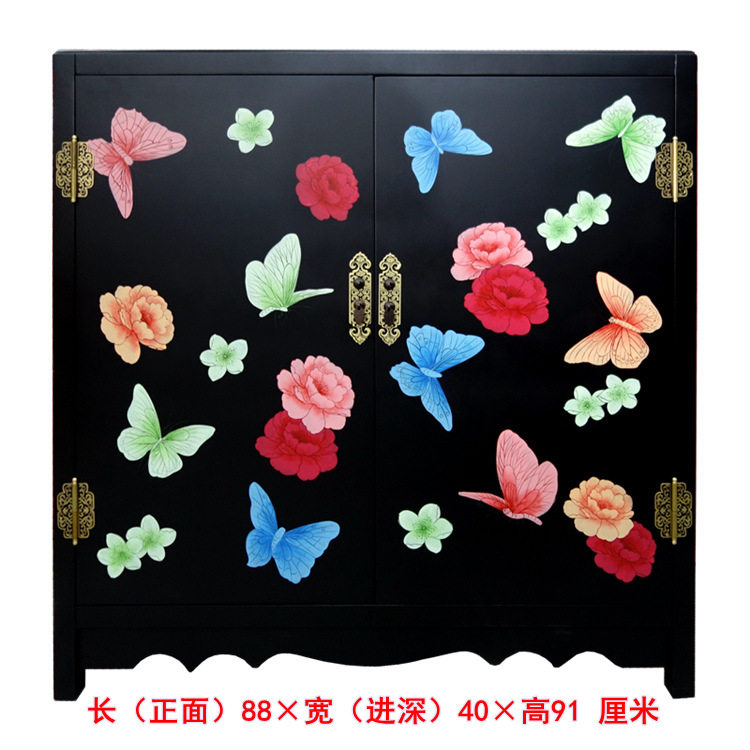 Lacquer art color painted butterfly double door Xuanguan Decorative Shoe Cabinet Custom Yangzhou Lacquer Ware New Chinese Vintage Solid Wood Furniture