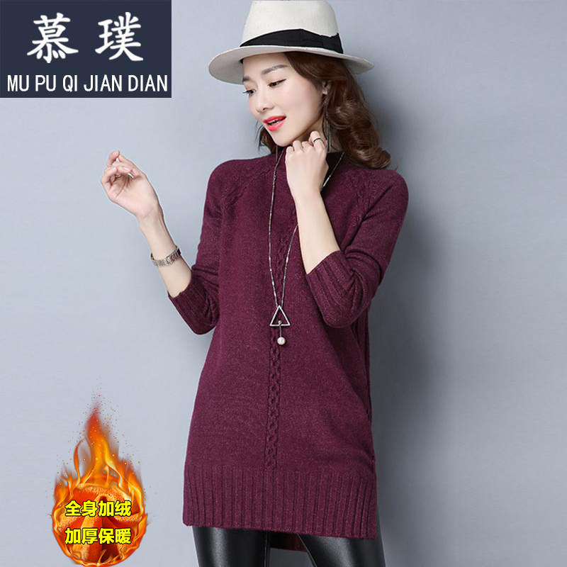 2022 Autumn Winter New Gush Thicken Sweater Woman Medium Long Version Knit Undershirt Sleeve Head Half Height Collar Long Sleeve Loose