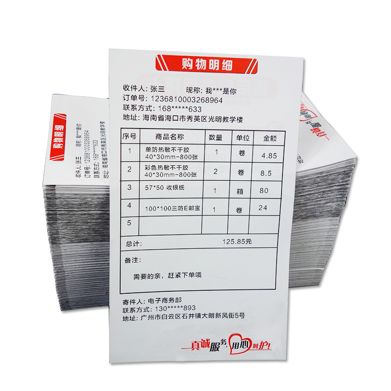 Thermal invoice Copy paper E-commerce express black calibration positioning purchase list Taobao warehouse list Thermal paper invoice Taobao after-sales card custom invoice Electronic face single express list