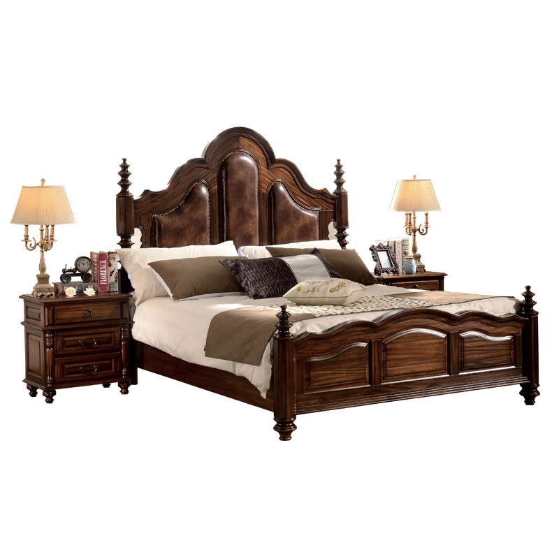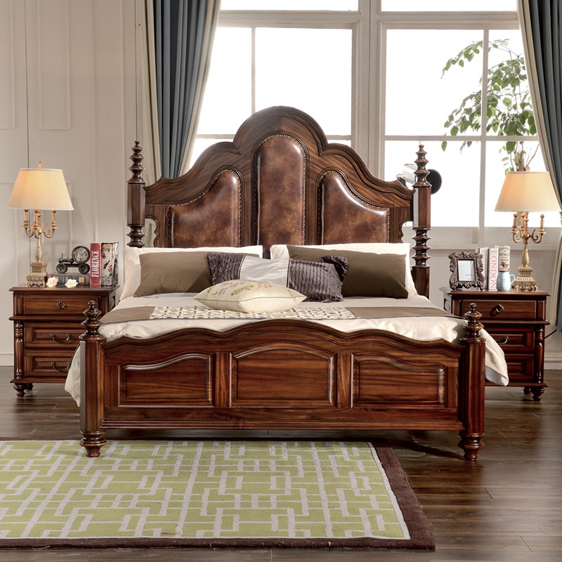 Gupo full solid wood bed black walnut bed leather soft double bed 18 meters wedding bed American bed bedroom furniture