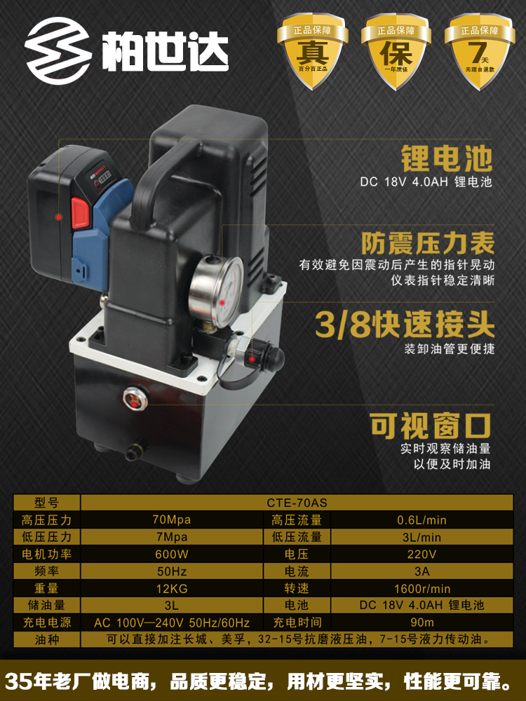 New rechargeable hydraulic electric pump QQ-700 small ultra-high pressure oil pump PU 18V lithium battery hydraulic pump station