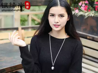 Round beads 990 foot silver sterling silver sweater refining long version necklace short simple pendant Joker fashion Korean national style