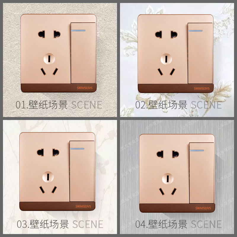 Type 86 concealed wall switch socket champagne gold one open double cut two or three plug power supply one open five hole double cut panel