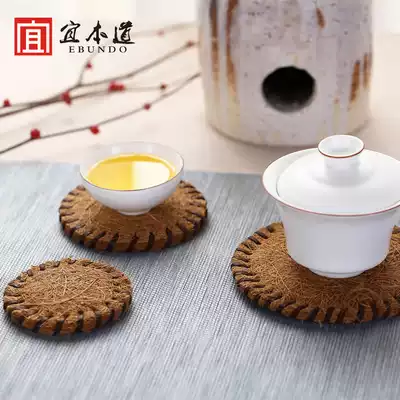 Japanese-style handmade loofah tea cup pad mane characteristic brown hair pad pot pad Woven fine brown heat insulation pad tea tray pad