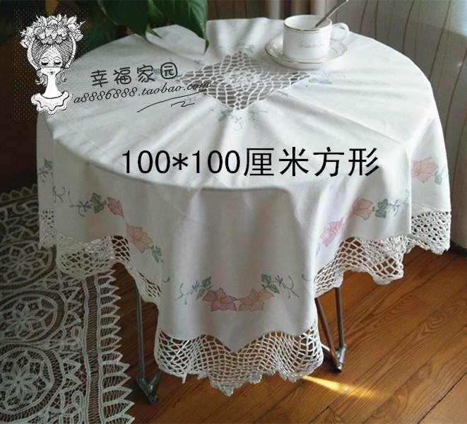 Foreign trade Export original single white color embroidered pure cotton handmade hooking side table cloth cover towels 100 * 100 cm