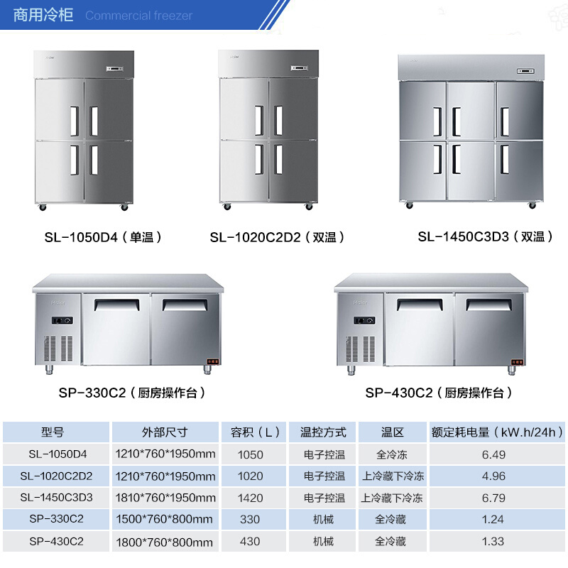 Haier Haier 1050 liter vertical four-door kitchen cabinet Ice cabinet full-frozen freezer commercial hotel fridge