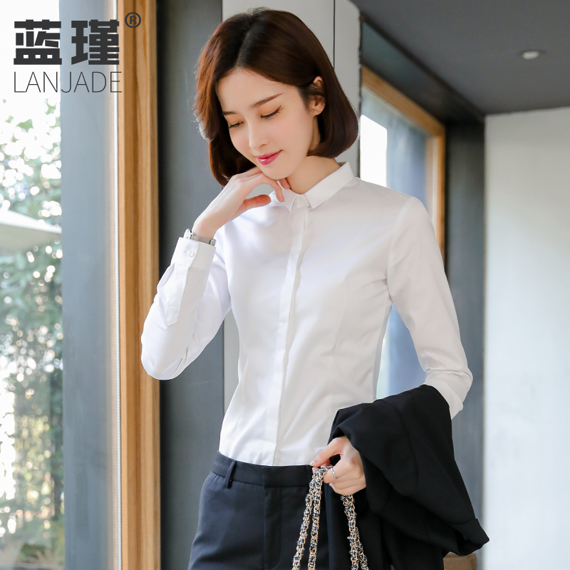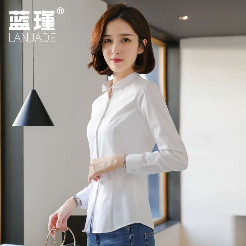 Small collar shirt women's long sleeve professional white shirt spring and autumn waist top bottom dress overalls overalls overalls tooling ol
