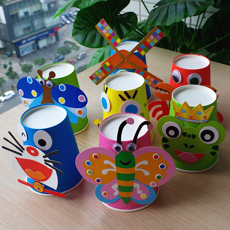 Children DIY creative collage kindergarten male girl's solid adhesive paper cups handmade fine art puzzle toy 3-6 years old