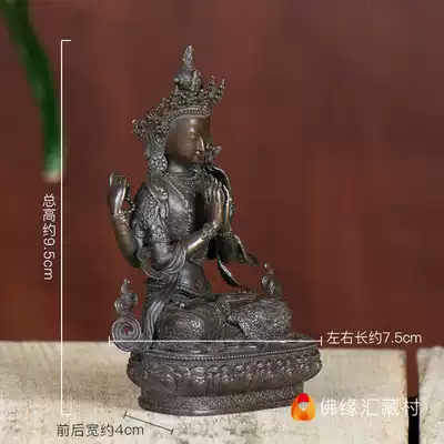 Buddha margin Huizang Village four-armed Guanyin Buddha statue pure copper antique tantric Buddha statue with small Buddha statue home offering 3 inches