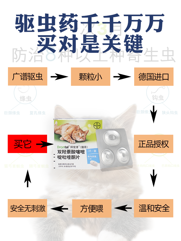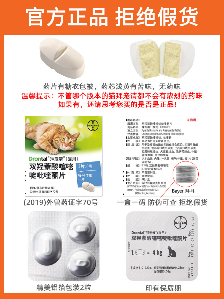 Two German imports of Bayer pet clear cat single grain Cat body deworming medicine insect tablets Pet insecticide