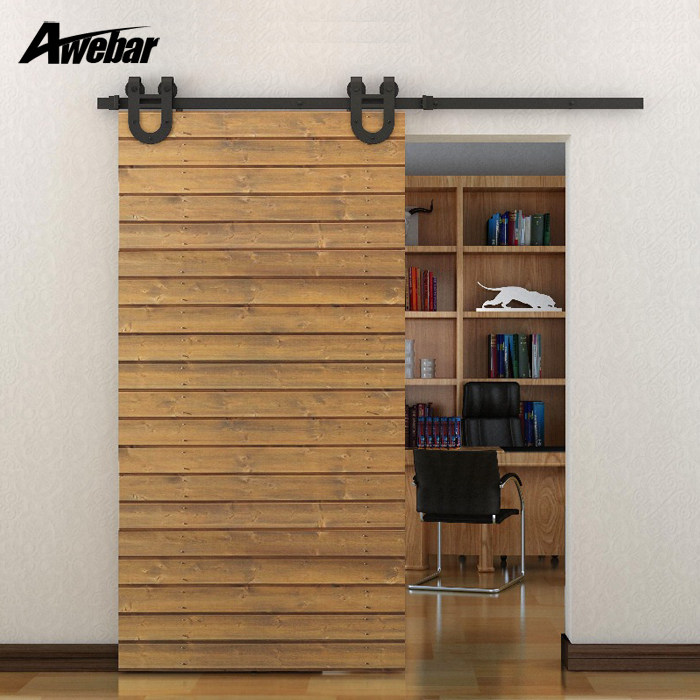 awebar Barn door hanging wheel track guide rail Sliding door push-pull glass imported carbon steel Horseshoe hanging wheel track